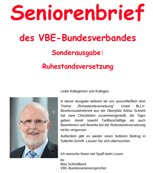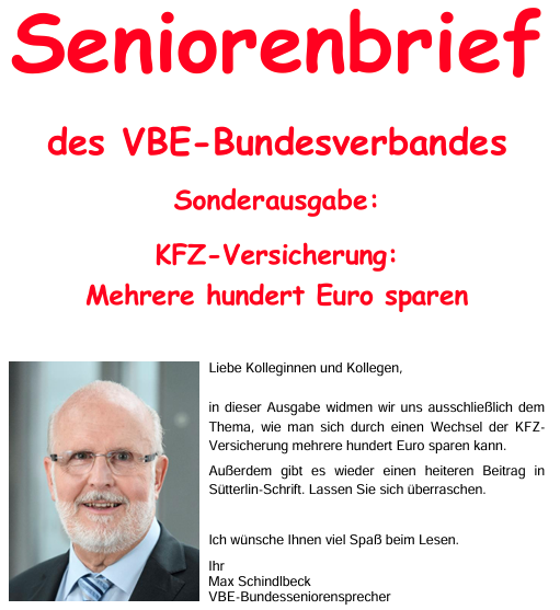 Hier lesen Sie den aktuellen Seniorenbrief des Verband Bildung und Erziehung (VBE)