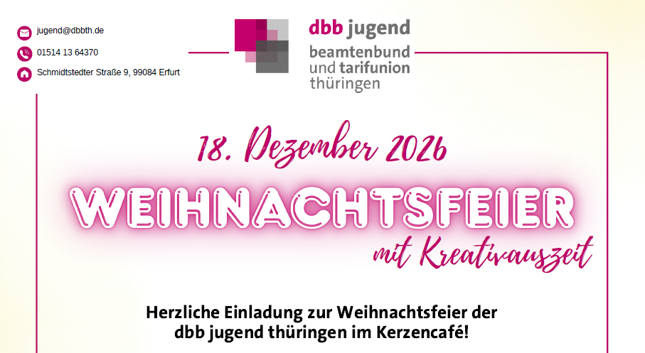 Herzliche Einladung zur Weihnachtsfeier der dbb jugend thüringen im Kerzencafé!